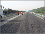 工程概述甬臺溫高速公路臺州段是甬臺溫高速公路與上三高速公路交匯路段,共有雙向隧道8座,大型互通立交1座,上下坡4處,且有1處上下坡為“S”形彎道。 復雜的路況、繁忙的車流、超負荷的承運,使這段穿山跨澗、蜿蜒起伏的高速路段不堪重負,路面損毀嚴重。針對高速公路因嚴重超負荷承載而引發諸多不安全因素,本次大修主要進行灑鋪1cm的橡膠瀝青應力吸收層,然后再加鋪4cm橡膠瀝青斷級配砼面層
